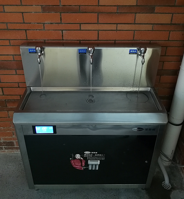 當天漢斯頓員工頂著36℃的高溫,在校園里忙碌著,原本歡聲笑語的校園,因為暑假變得十分沉寂。只是偶爾能看到幾個遠鄉留校的身影,但是這并不影響安裝凈水設備師傅的激情,可能是學校想給即將返校的學生們一個驚喜,選擇學生們離校的時候大規模安裝凈水設備,凈水設備都放置在教學樓每層樓道專設的飲水處,以及教師辦公室,供學生和教職工們日常飲用。