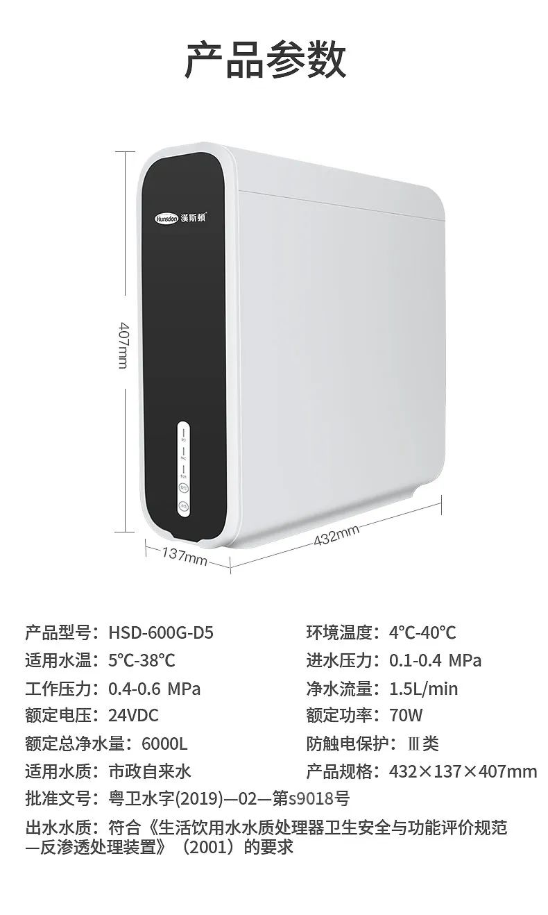 漢斯頓純水機(jī)600G-D5,超薄設(shè)計(jì),引領(lǐng)凈水潮流