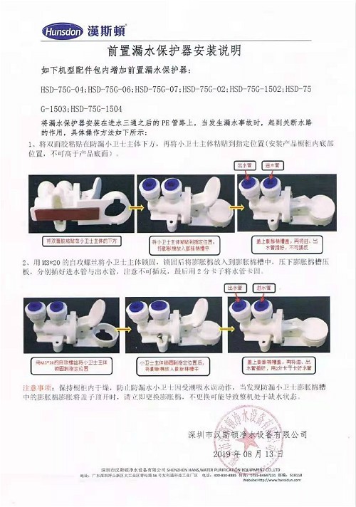 為提升用戶體驗,解決不堪其擾的凈水器漏水問題,漢斯頓特配置「前置漏水保護器」,適用于凈水器的漏水保護和報警并切斷水源。