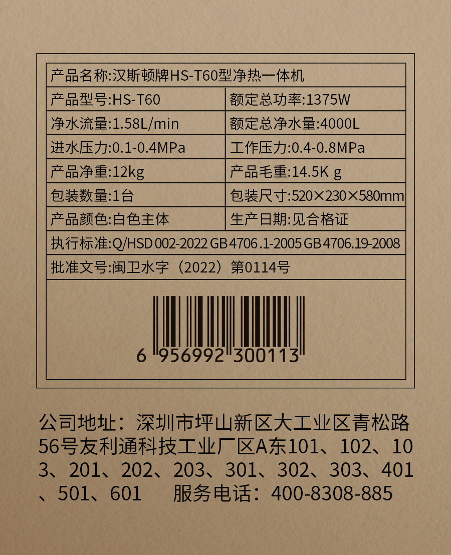 二.從產(chǎn)品的外包裝——紙箱辨別,需檢查漢斯頓公司地址、服務電話、郵政編碼、官網(wǎng)鏈接是否符合。如下圖:
