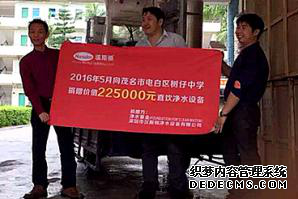 2016年6月6日,漢斯頓凈水器和美國基金會,聯合發起的“以愛凈水”公益項目,向茂名市電白區樹仔中學捐贈價格22.5萬元的全套凈水設備正式使用。當日,樹仔中學舉行了熱烈慶典,表達對漢斯頓凈水設備有限公司及美國基金會獻大愛的感激之情。